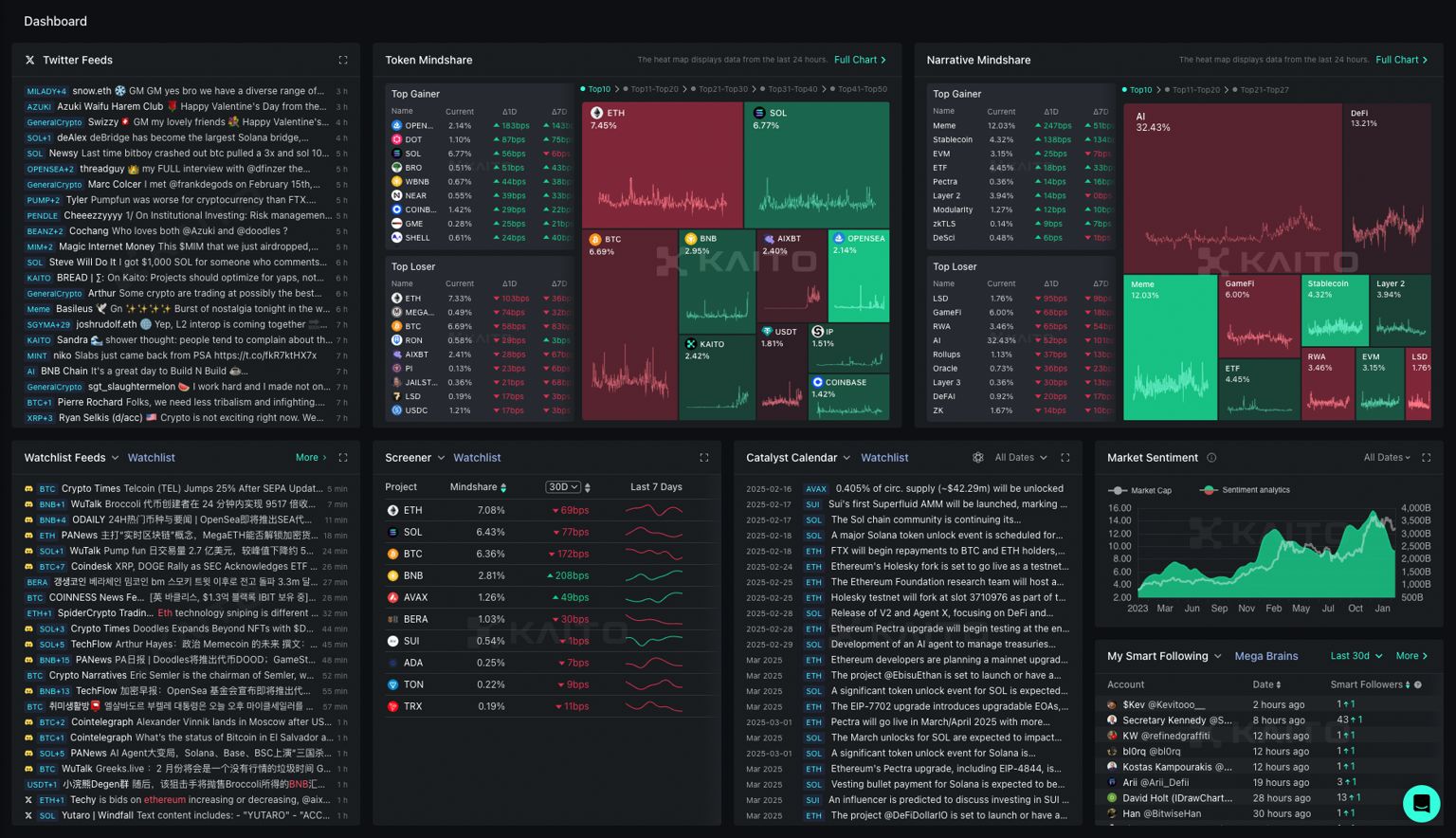 Information Fragmentation: News, analysis, and debates are scattered across countless platforms. Kaito indexes thousands of these sources and consolidates them into a single hub.