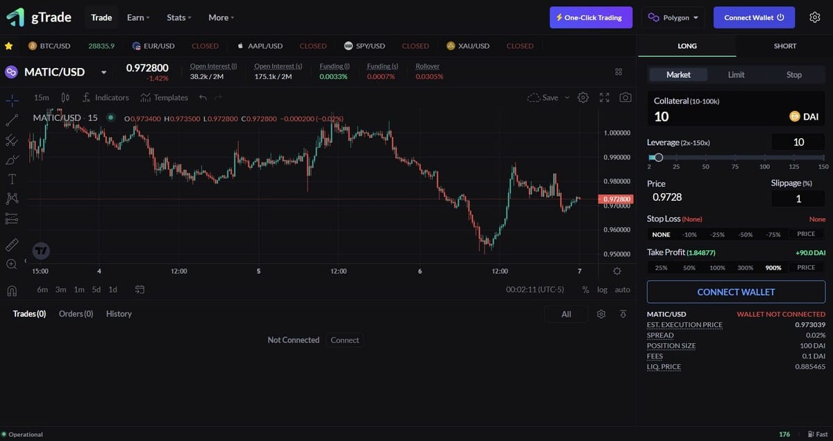 The Gains Trade (gTrade) is a decentralized leveraged trading platform.