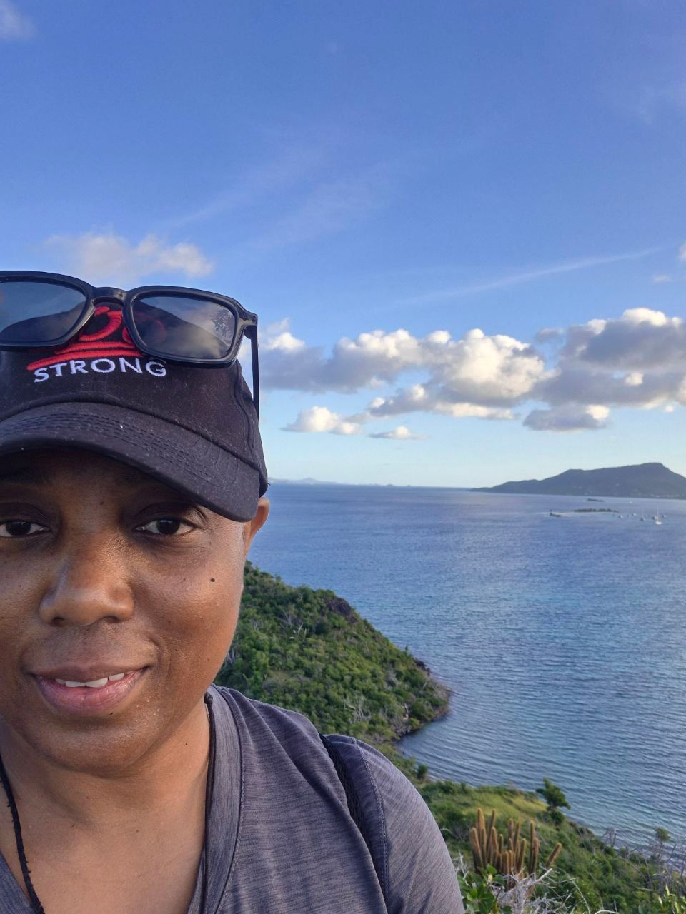 I did not even look down to measure how far I came. Instead, I looked out and I admired the 360 view. I could see the ocean stretching wide, Sandy Island sitting pretty in the distance, and the lushness all around. I breathed in the fresh air, laughed, talked, and cheered on the hikers who were still climbing.