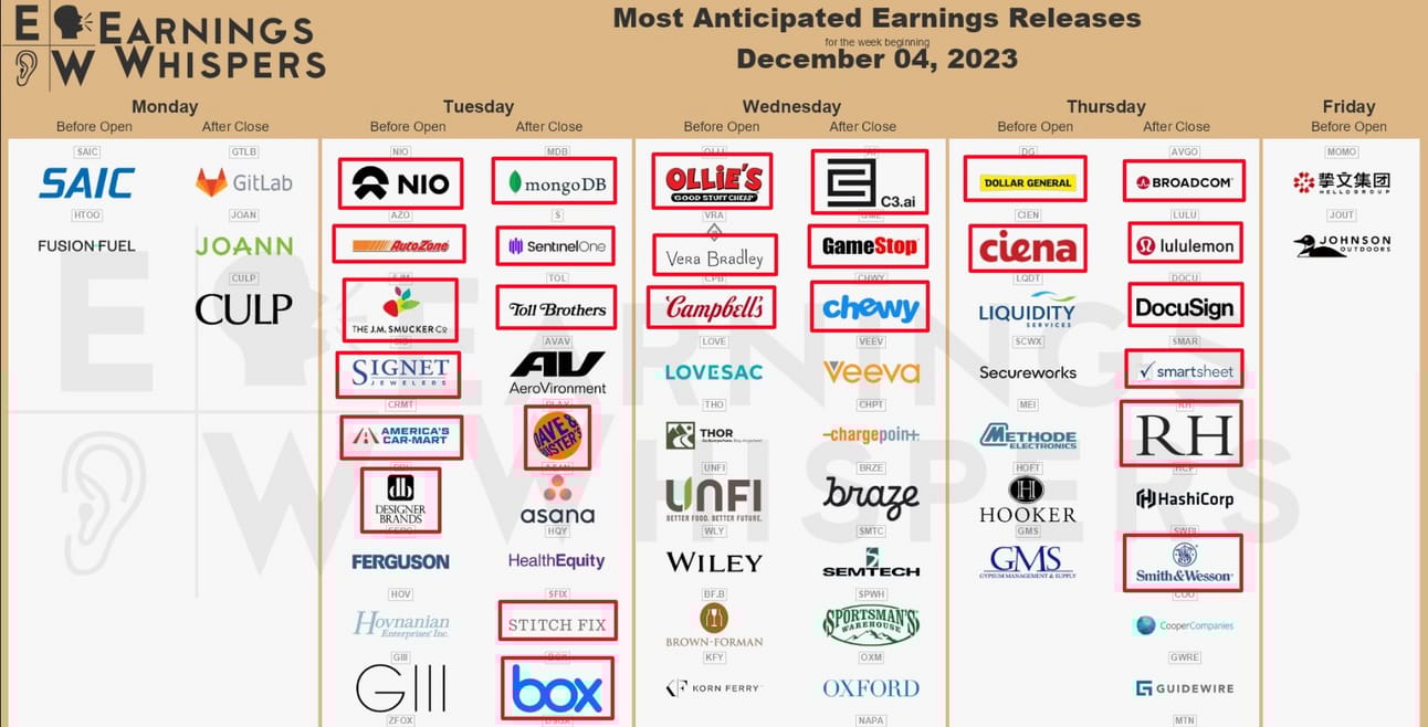 Earnings season continues to dwindle. The most anticipated earnings releases this week are shown in the chart below.