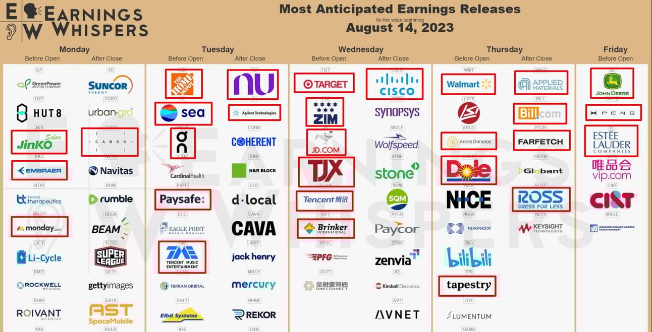 Although earnings season is slowing down, there are still many large companies yet to report. Look out for $TGT, $TJX, $CSCO, $JD, and $TCEHY tomorrow; $WMT, $ROST, and $AMAT on Thursday; and $DE, $PANW, and $XPV on Friday.