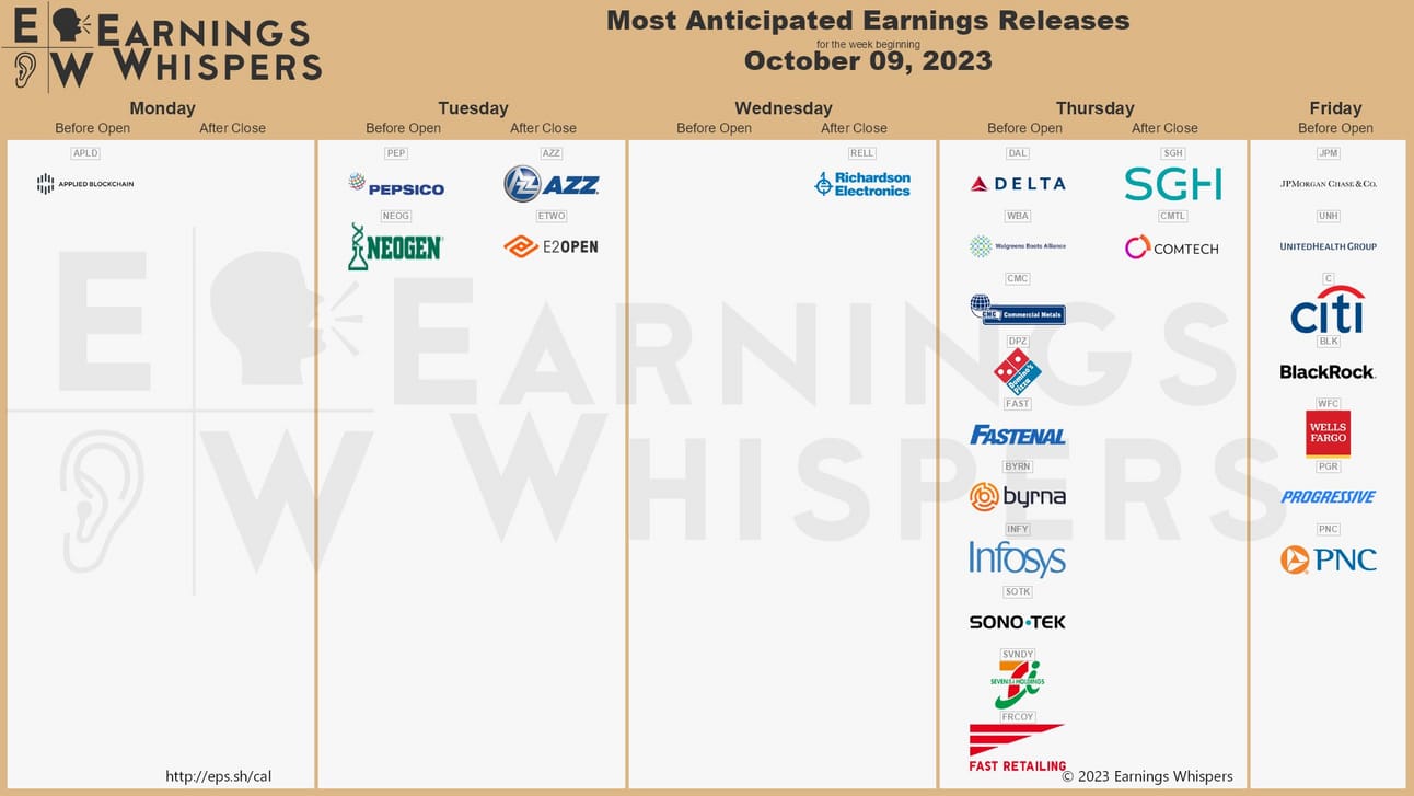 The kickoff for third-quarter earnings is happening this week, which means we can expect reports from major banks, including JPMorgan Chase & Co (NYSE: JPM), Citigroup (NYSE: C), Wells Fargo (NYSE: WFC), and BlackRock (NYSE: BLK).