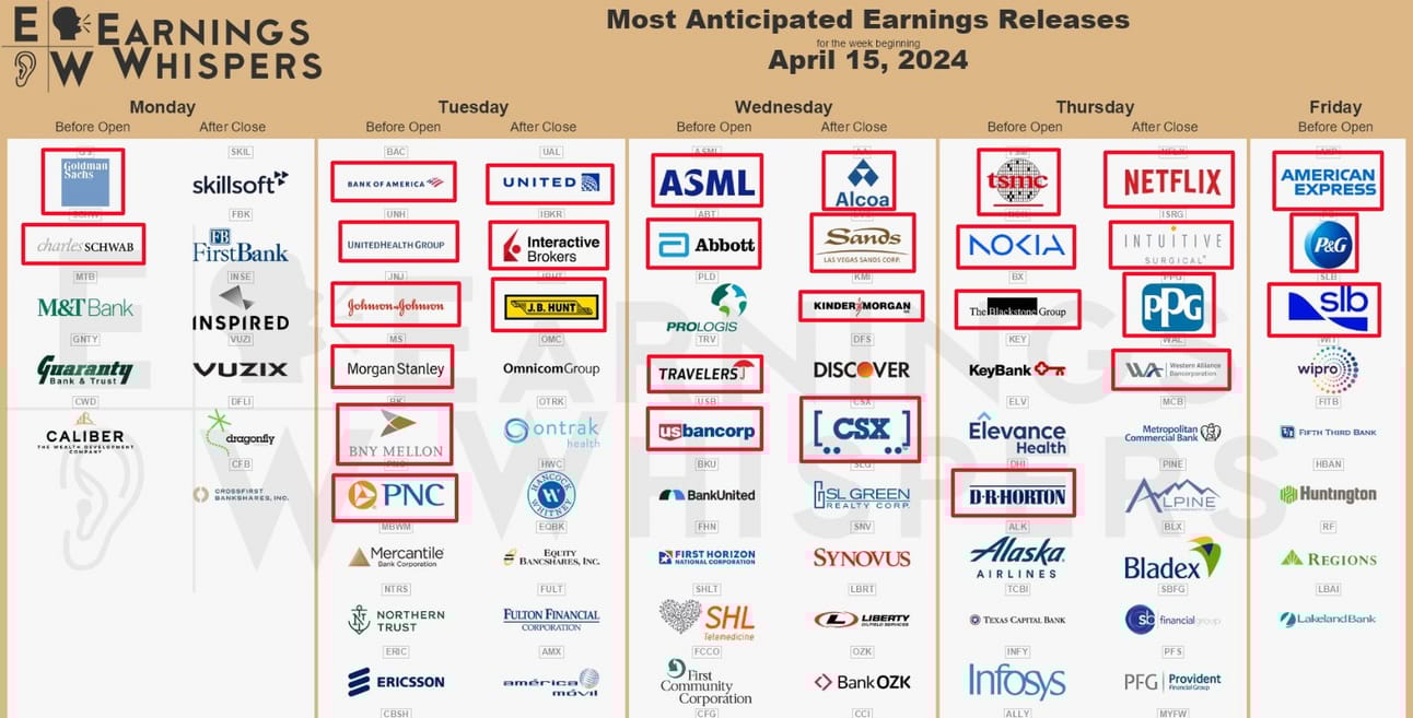 Q1 2024 Earnings Season: Begins this week, a crucial period for gauging corporate health amid ongoing inflation concerns.