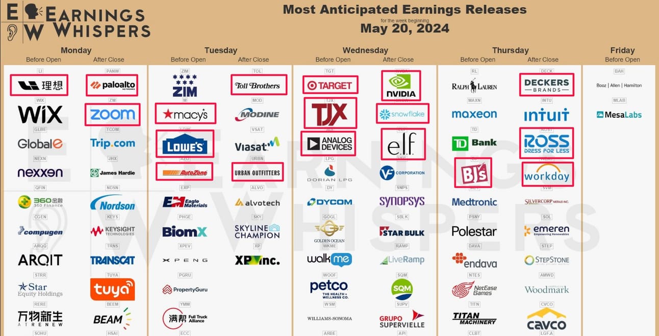 Earnings continue, with the much-anticipated NVIDIA (NVDA) earnings report taking center stage.