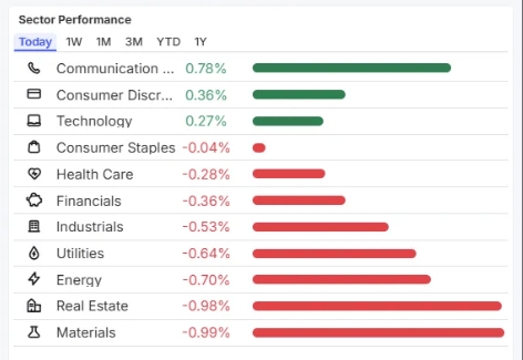 In this example, Communication Services Sector is up, while Industrials are under pressure.