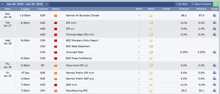 Medium-to-High Impact Global Economic Events This Week: