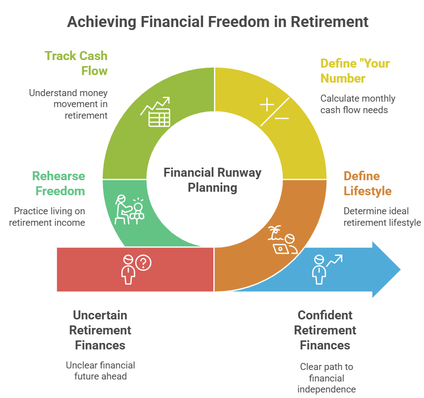 When you add these together, net worth, peace number, and emergency cushion, you get your financial runway. It’s the space between where you are and where you want to go.